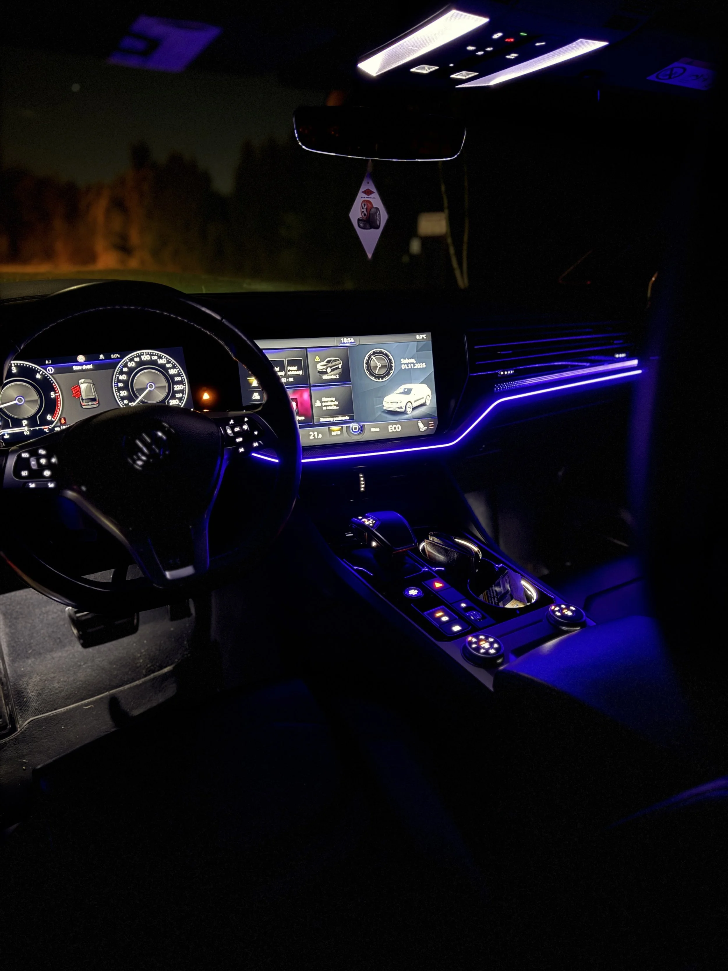 Interiér vozidla ponúka luxusnú atmosféru – priestranné a komfortné sedadlá, moderný infotainment systém, ambientné osvetlenie a kvalitné materiály vytvárajú prostredie, v ktorom sa budete cítiť výnimočne. Priestor, technológie a tichý chod robia z jazdy v Touaregu zážitok, ktorý si užijete od prvej minúty.